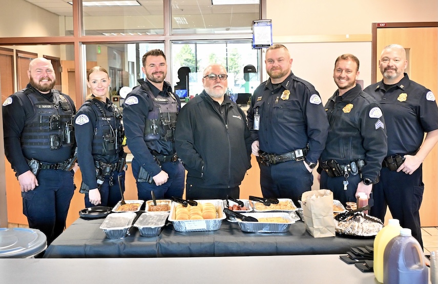 Representatives from the restaurant visited the department to provide lunch for officers and staff, demonstrating appreciation for their service.